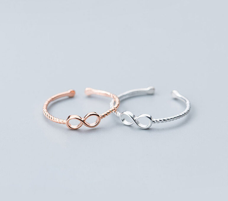 แหวนเงินแท้รูปสัญลักษณ์ Infinity ซึ่งหมายถึงความนิรันดร์ ไม่มีที่สิ้นสุด และไม่มีขอบเขต จึงเป็นสัญลักษณ์ของความโชคดี และความรักความสัมพันธ์ที่ยั่งยืนนิรันดร์ รุ่นนี้ออกแบบให้ดูมินิมอลเรียบง่าย เข้ากับทุกชุด เหมาะสำหรับใส่ได้ทุกวัน มี 2 สี คือ สีเงินคลาสสิค และสีโรสโกลด์อ่อนหวาน